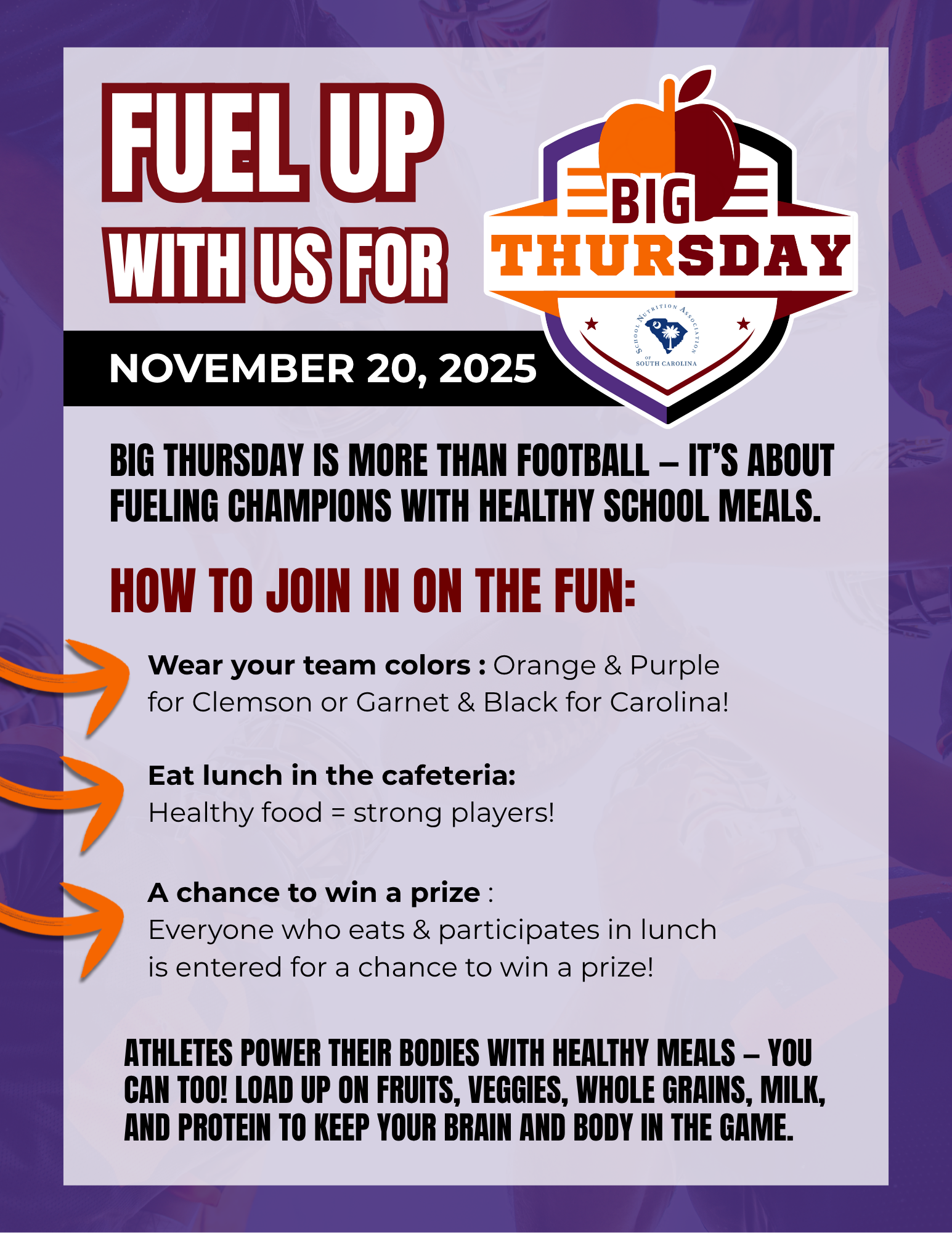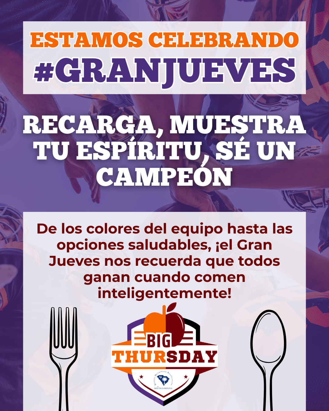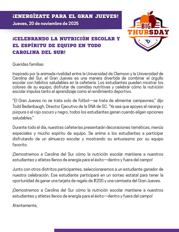 ¡Mostremos a Carolina del Sur cómo brilla la nutrición escolar en Big Thursday!